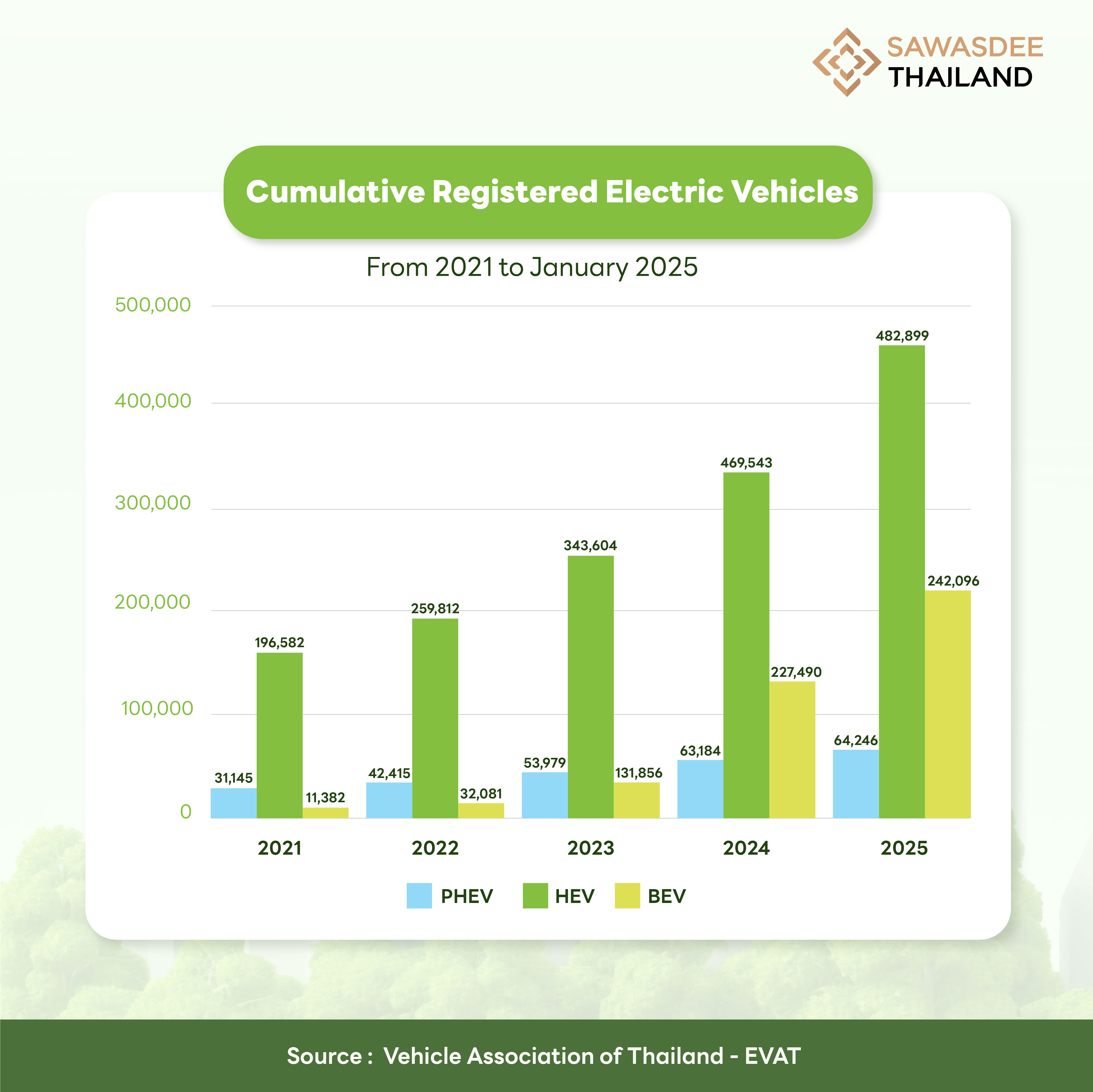 ข้อมูลจาก : สมาคมยานยนต์ไฟฟ้าไทย Electric Vehicle Association of Thailand - EVAT