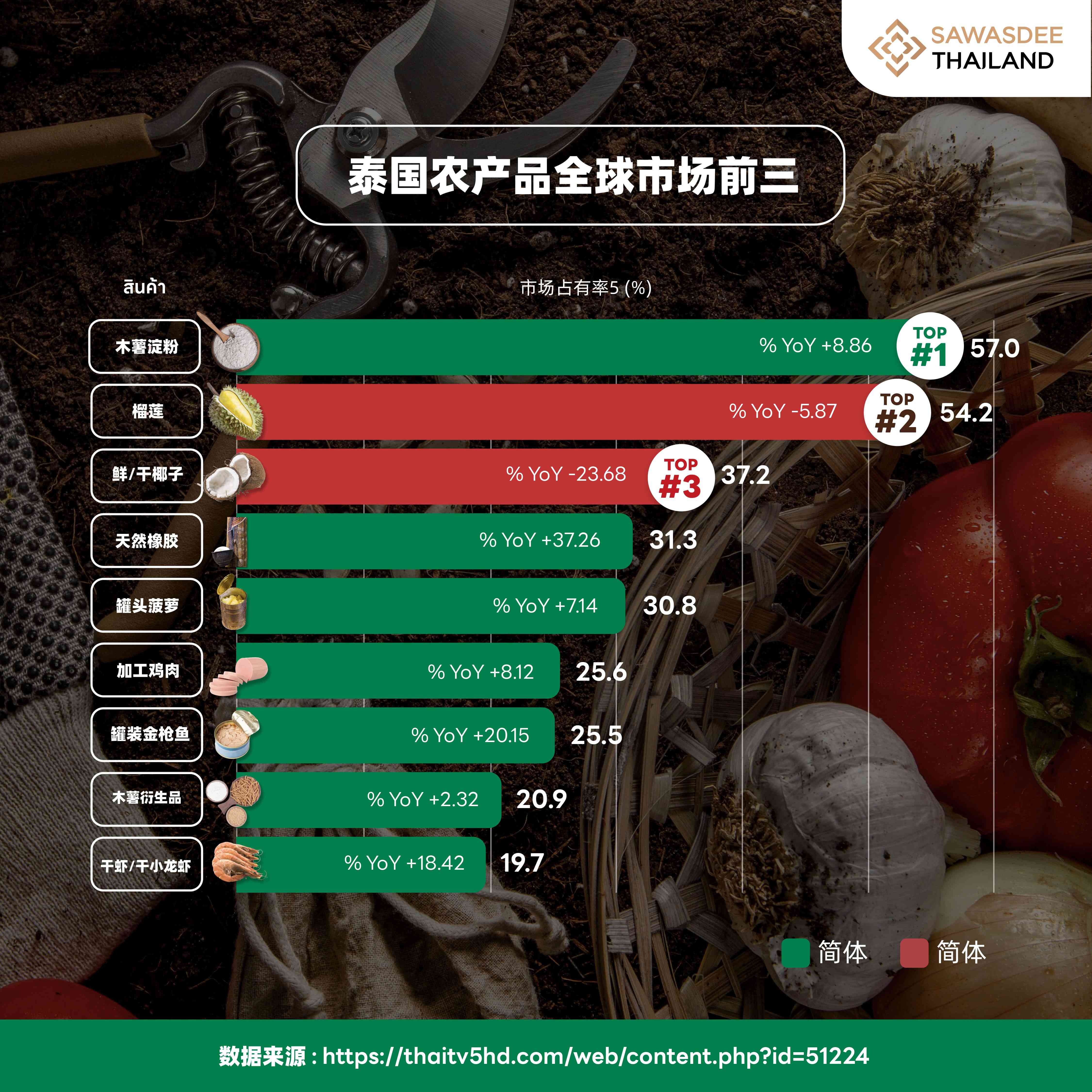 泰国领跑全球市场! 农产品出口突破1.8兆泰铢 多项出口品类称霸全球