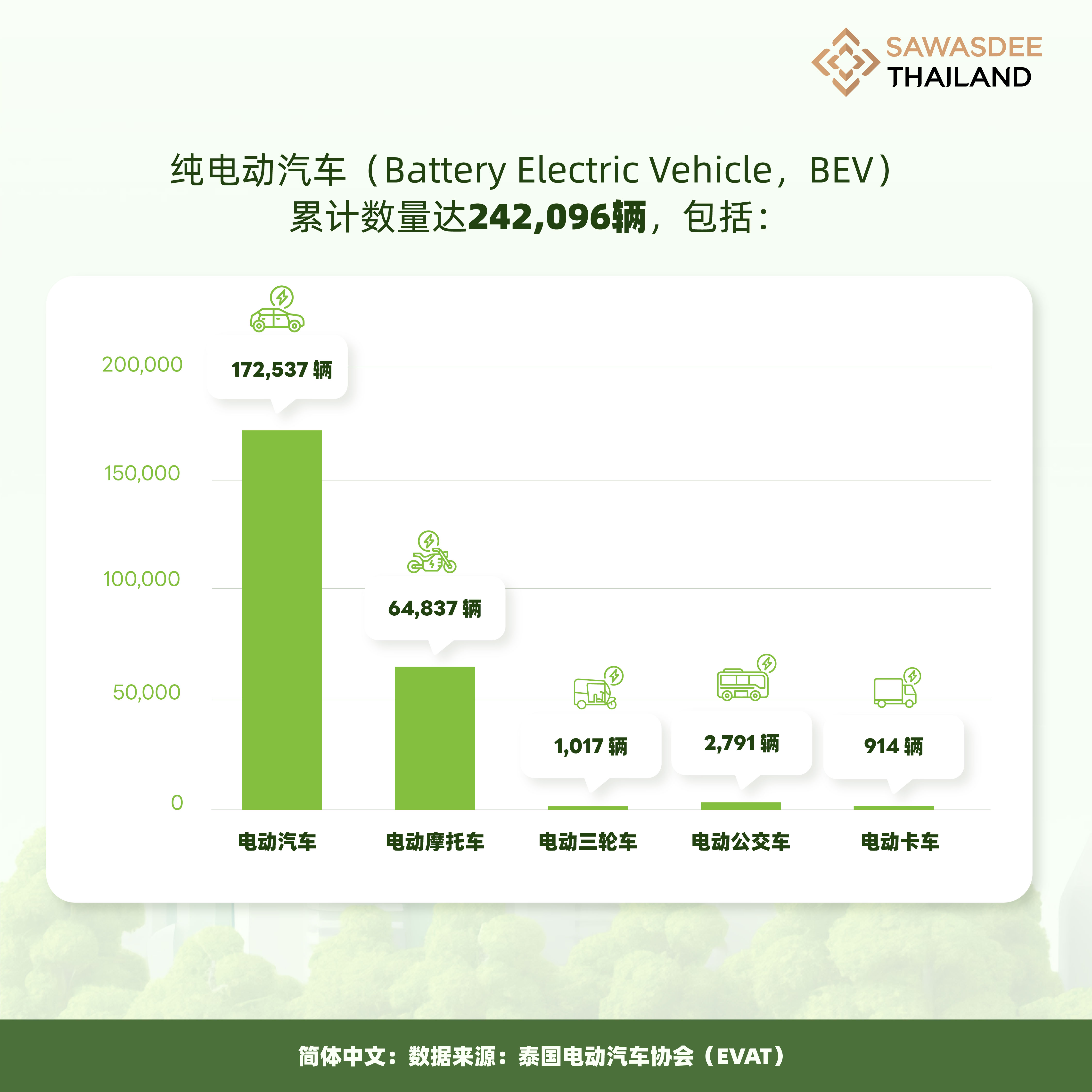 纯电动汽车(Battery Electric Vehicle,BEV)累计数量达242,096辆,包括:
