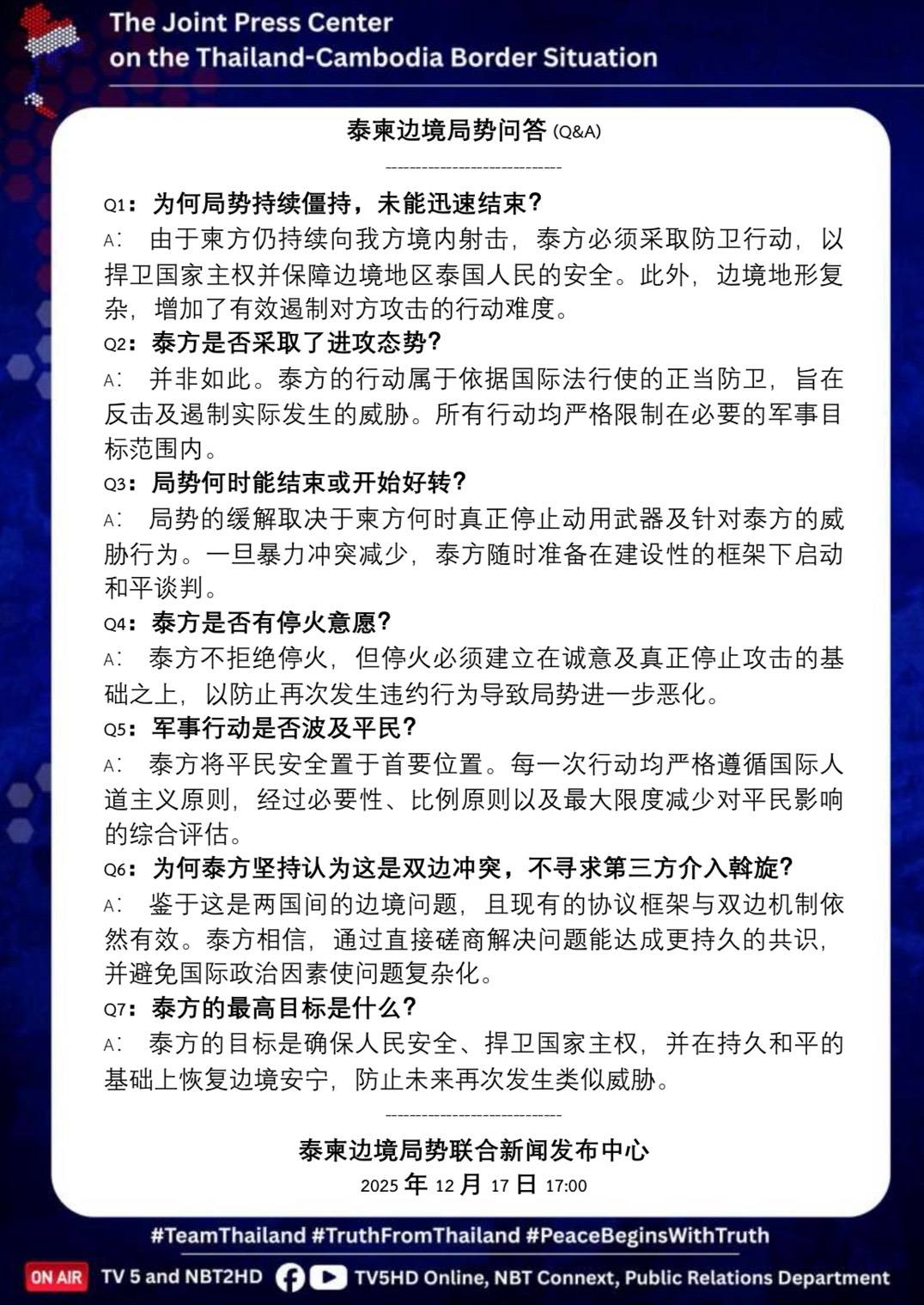 泰柬边境局势问答(Q&A) 泰柬边境局势联合新闻发布中心 2025年12月17日17:00
