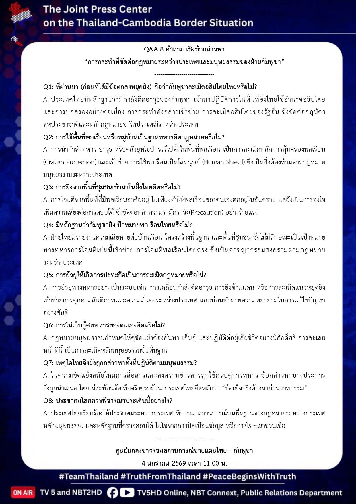 Q&A : เชิงข้อกล่าวหา “การกระทำที่ขัดต่อกฎหมายระหว่างประเทศและมนุษยธรรมของฝ่ายกัมพูชา”