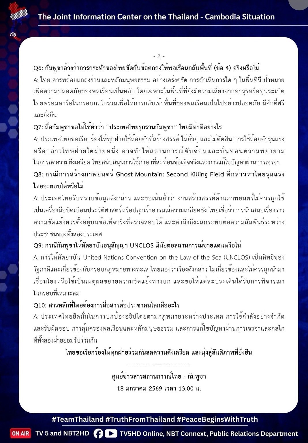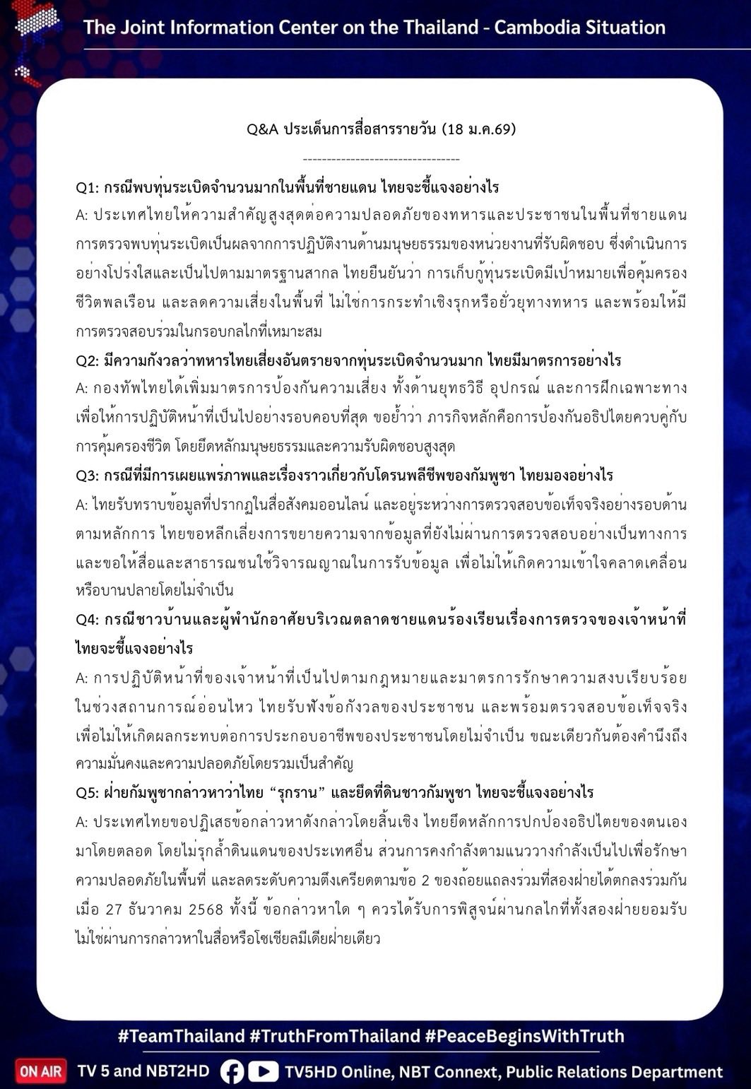 Q&A ประเด็นการสื่อสารรายวัน 18 มกราคม 2569