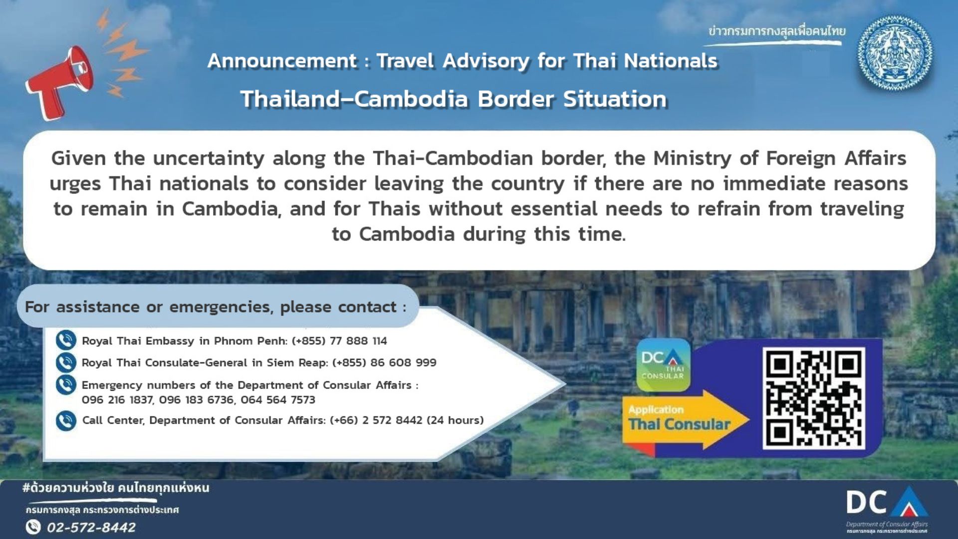 Thailand affirms that all actions taken during this period are carried otu in full accordance with international law, with the safety of civilians as the highest priority. Thai security agencies employ force only to the minimum extent necessary and only on imminent military targets.
