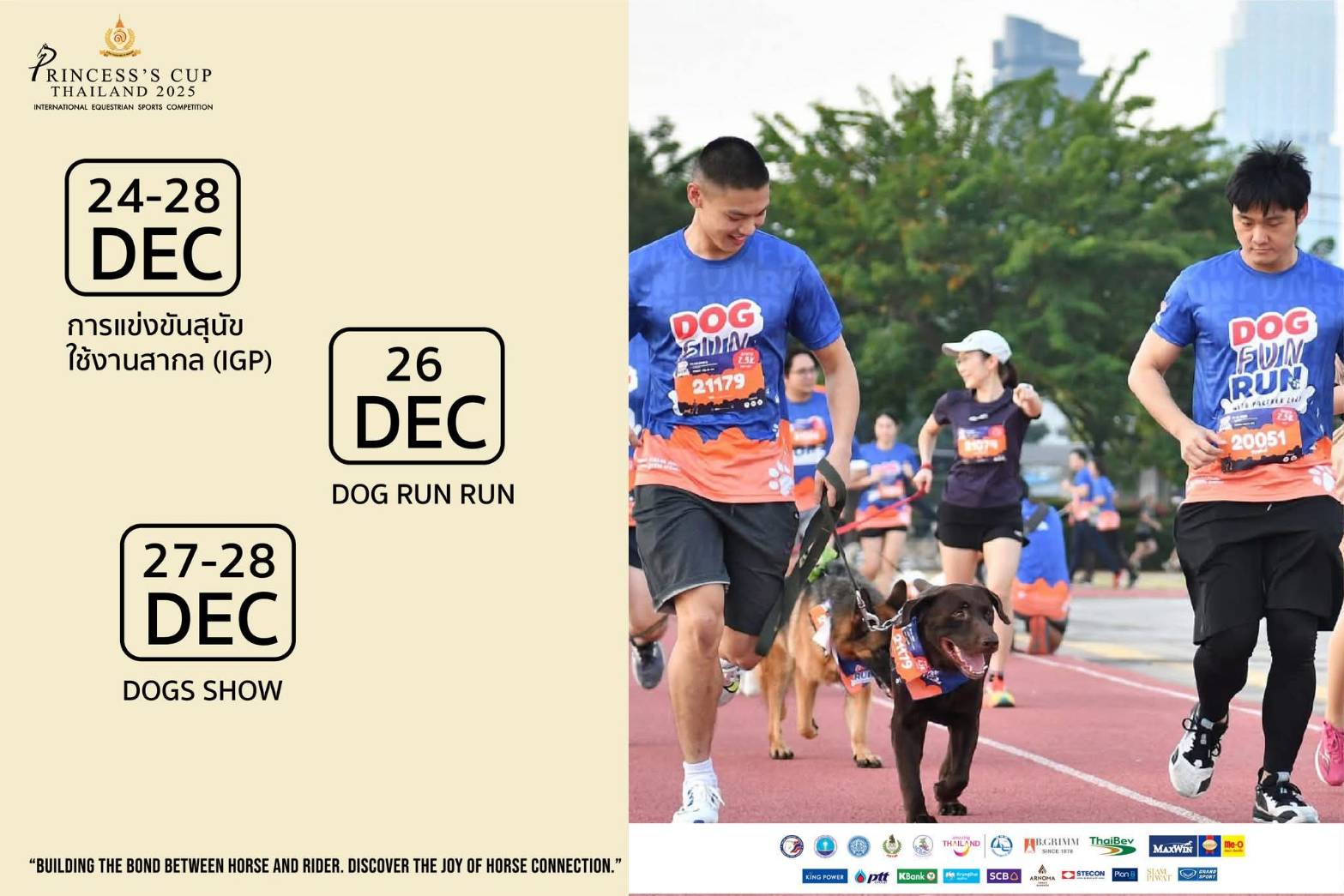 The Princess’s Cup Thailand 2025, scheduled for 22-28 December, is organized under the theme “Building the Bond Between Horse & Rider. Discover the Joy of Horse Connection” at the Royal Stable Unit, Royal Thai Army 2nd Cavalry Division, King's Guard, Sanam Pao, Phahonyothin Road in Bangkok. Members of the public are invited to experience the profound horse-rider relationship in equestrian sports and learn about the inspiration and vision of Her Royal Highness Princess Sirivannavari Nariratana Rajakanya, who plays an important role in driving Thailand’s equestrian sports internationally.